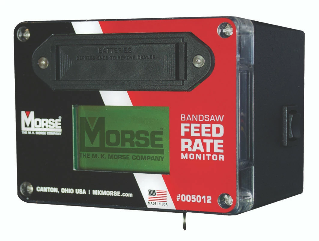 Provides real time, accurate feed rate of the band saw blade through the material being cut. Shows irregular or erratic machine feed which can indicate mechanical / hydraulic problems with the machine.